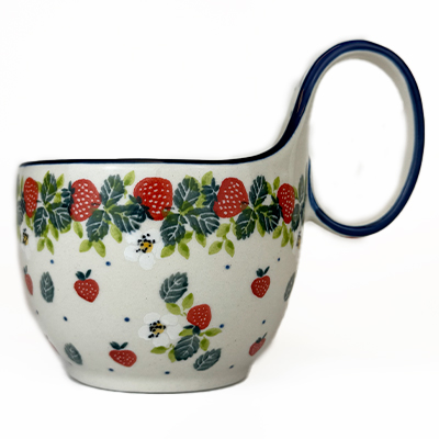This soup mug is 16 oz. and is approx. 5"H. It's handle makes it the perfect bowl for soup, chili, cereal, ice cream or use it for serving your favorite dips or sauces. Hand painted by Ceramika Artystyczna. Oven, microwave and dishwasher safe.
