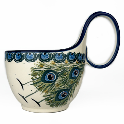 This soup mug is 16 oz. and is approx. 5"H. It's handle makes it the perfect bowl for soup, chili, cereal, ice cream or use it for serving your favorite dips or sauces. Hand painted by Ceramika Artystyczna. Oven, microwave and dishwasher safe.