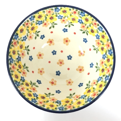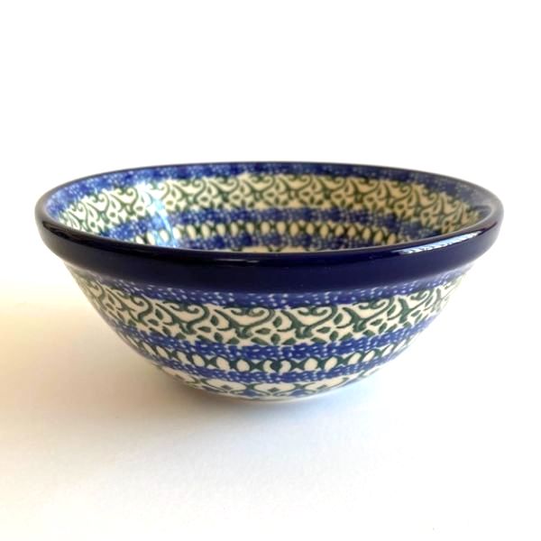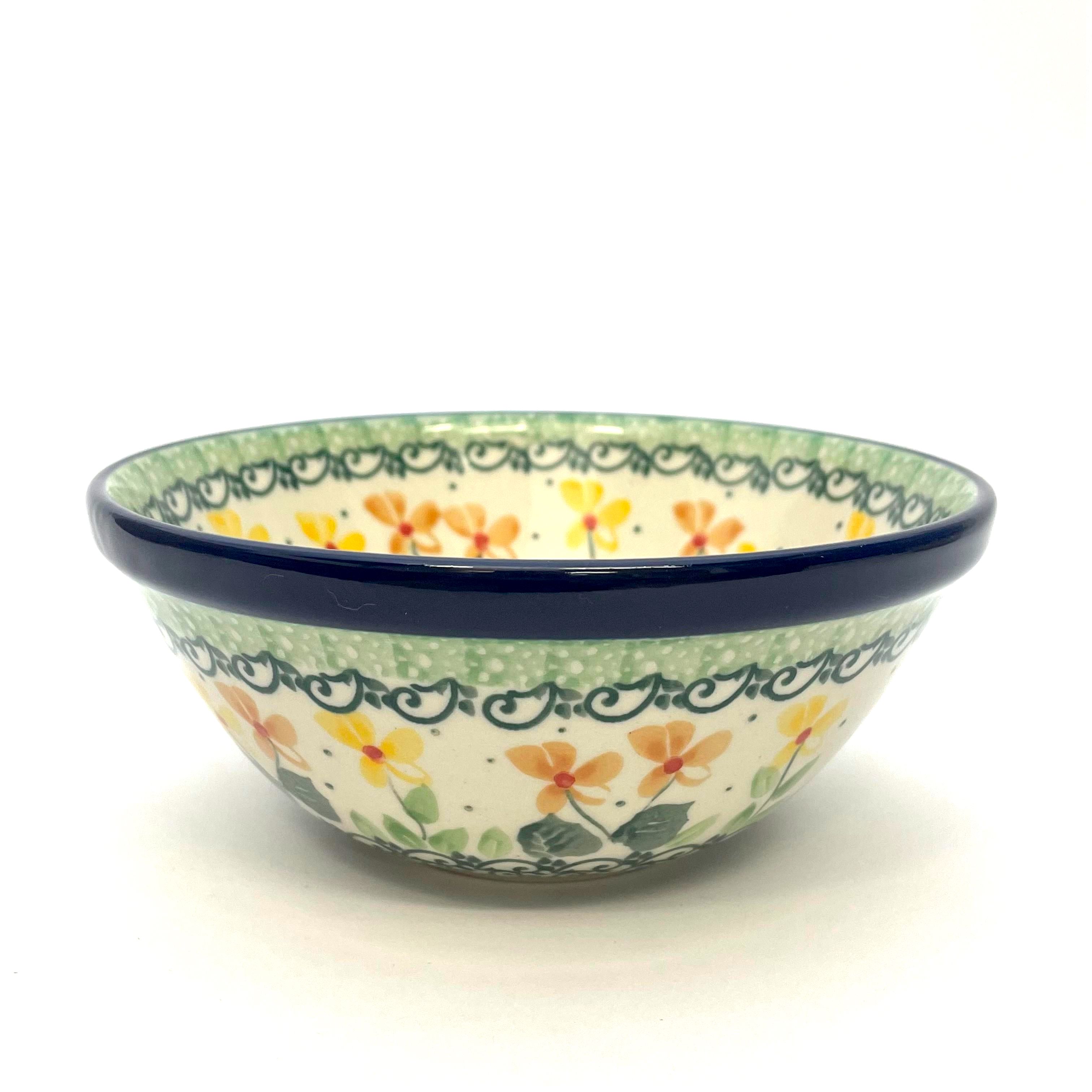 This bowl is 2.25"H x 5.5"W. Petite serving size for cereal, fruit etc. It is 1st Quality from Ceramika Artystyczna, and is oven, microwave and dishwasher safe.
