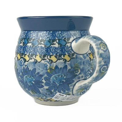 Ladies Bubble Mug This mug is 10 oz. and is approx. 3.75"H. These intricate designs are all signed by the artist who created them. True works of art to add to your Polish pottery collection. Hand painted by a master artist at Ceramika Artystyczna. Oven, microwave and dishwasher safe.