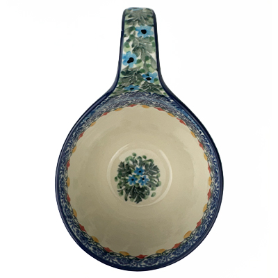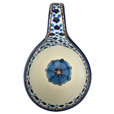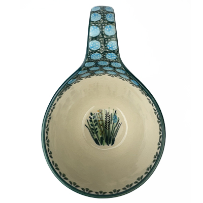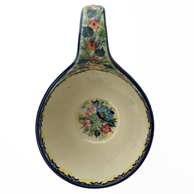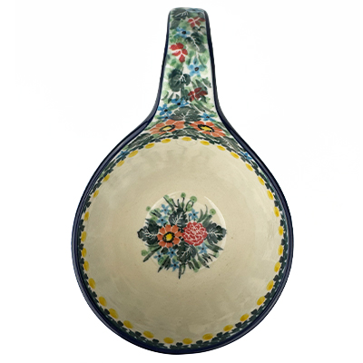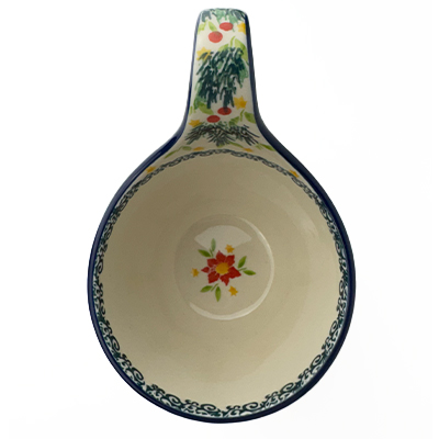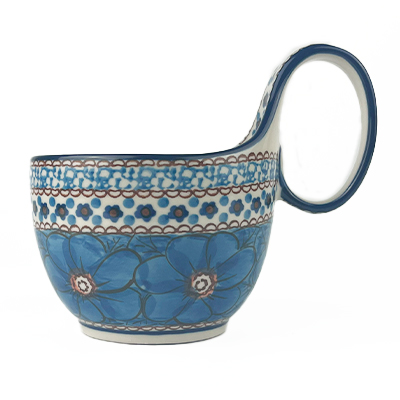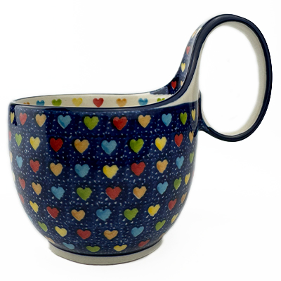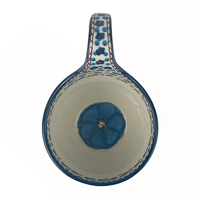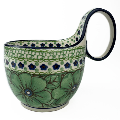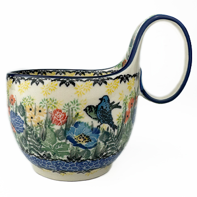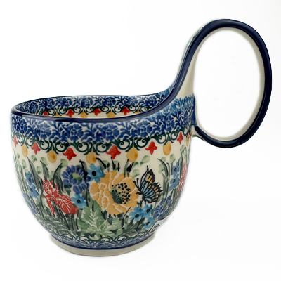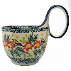 Unikat (unique) soup mug with handle. This soup mug is 16 oz. and is approx. 5"H. It's handle makes it the perfect bowl for soup, chili, cereal, ice cream or use it for serving your favorite dips or sauces. These intricate designs are all signed by the artist who created them. True works of art to add to your Polish pottery collection. Hand painted by a master artist at Ceramika Artystyczna. Oven, microwave and dishwasher safe.