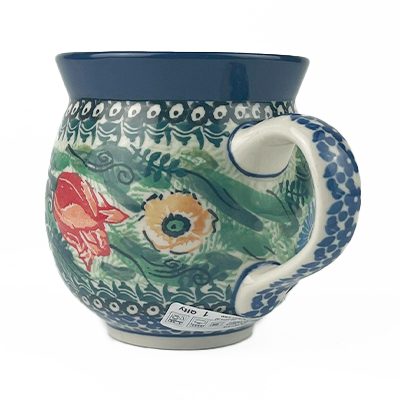 Ladies Bubble Mug This mug is 10 oz. and is approx. 3.75"H. These intricate designs are all signed by the artist who created them. True works of art to add to your Polish pottery collection. Hand painted by a master artist at Ceramika Artystyczna. Oven, microwave and dishwasher safe.