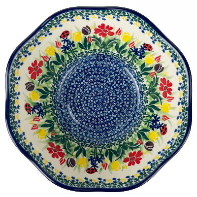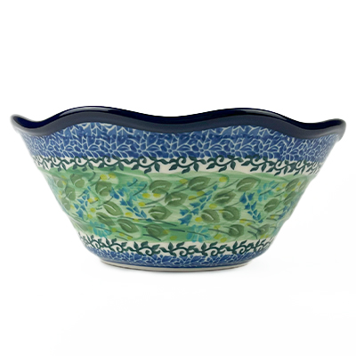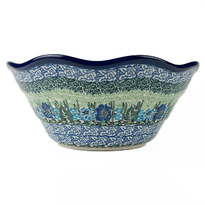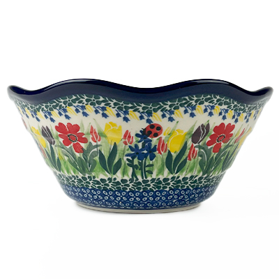 This wavy edge bowl is both a decorative and versatile serving dish. 8" W x 3.5" H. Hand painted by the master artists at Ceramika Artystyczna. Oven, microwave and dishwasher safe.