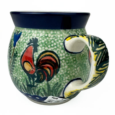 This Unikat Bubble Mug is 7 oz. and is approx. 3.25"H. These intricate designs are all signed by the artist who created them. True works of art to add to your Polish pottery collection. Hand painted by a master artist at Ceramika Artystyczna. Oven, microwave and dishwasher safe.