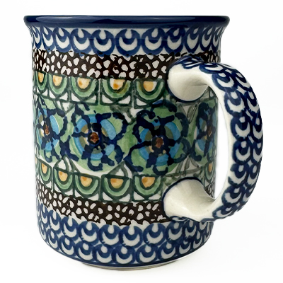 This Straight Mug is 10 oz. and is approx. 3.75"H. These intricate designs are all signed by the artist who created them. True works of art to add to your Polish pottery collection. Hand painted by a master artist at Ceramika Artystyczna. Oven, microwave and dishwasher safe.