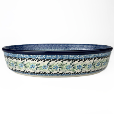 This Unikat Small Oval Baker is 10" by 7". Take your favorite meal right from the oven to the table in this beautiful baker. Bakes evenly and will keep your food hot through your meal. These intricate designs are all signed by the artist who created them. True works of art to add to your Polish pottery collection. Hand painted by a master artist at Ceramika Artystyczna. Oven, microwave and dishwasher safe.