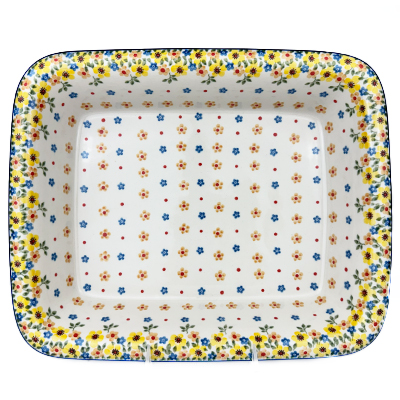 This 10" x 13" Lasagna Baker is a customer favorite! The rolled edge makes it easy to get in and out of the oven. Hand painted by Ceramika Artystyczna and is oven, microwave and dishwasher safe.