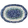 15" oval platter with handles is 1.5" deep. This generous sized platter is great for all of your serving needs. Hand painted by the Ceramika Artystyczna factory and is oven, microwave and dishwasher safe.