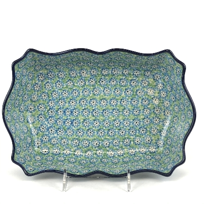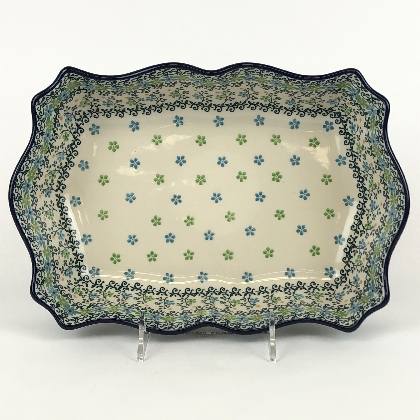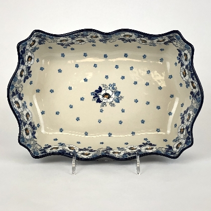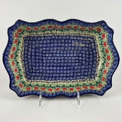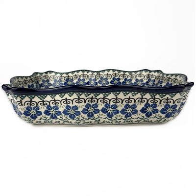 Dish Fancy Edge is 11in by 8in. This dish will look beautiful on your holiday table. Hand painted by Ceramika Artystyczna and is oven, microwave and dishwasher safe.