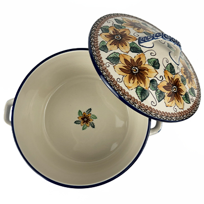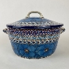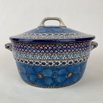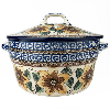 The Unikat Covered Casserole dish is 8" across and 4" deep (not including handles). Keep your casseroles hot from the oven to the table. These intricate designs are all signed by the artist who created them. True works of art to add to your Polish pottery collection. Hand painted by a master artist at Ceramika Artystyczna. All pottery is oven, microwave and dishwasher safe.