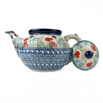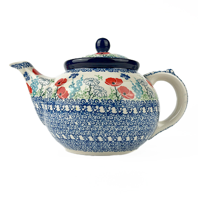 The 5 Cup Teapot painted by master artists at Ceramika Artystyczna. This piece is oven, microwave and dishwasher safe.