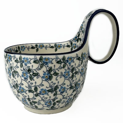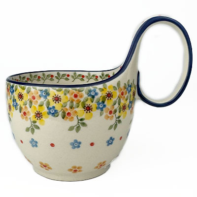 This soup mug is 16 oz. and is approx. 5"H. It's handle makes it the perfect bowl for soup, chili, cereal, ice cream or use it for serving your favorite dips or sauces. Hand painted by Ceramika Artystyczna. Oven, microwave and dishwasher safe.