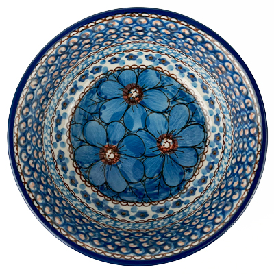 The Unikat Cereal Bowl is approx 2.5"H x 6"W. It makes a perfect cereal, soup or salad bowl. Hand painted by a Ceramika Artystyczna master artist. This bowl is oven, microwave and dishwasher safe.