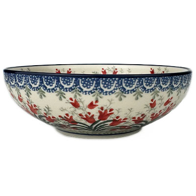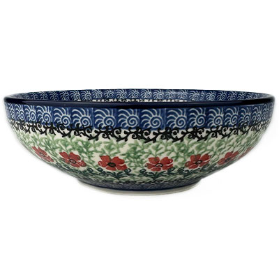 This 6.5" shallow bowl is great for a side salad or soup. Also makes a nice smaller serving dish for sauces and dips. Hand painted by Ceramika Artystyczna. Oven, microwave and dishwasher safe.