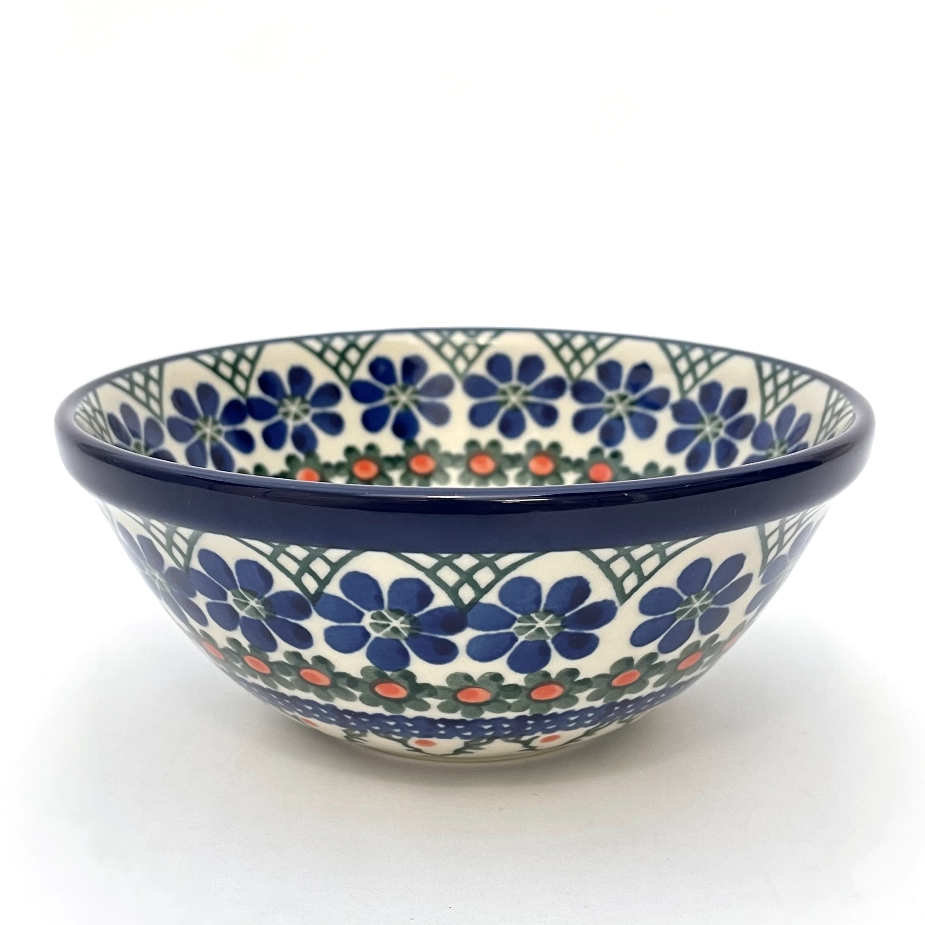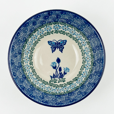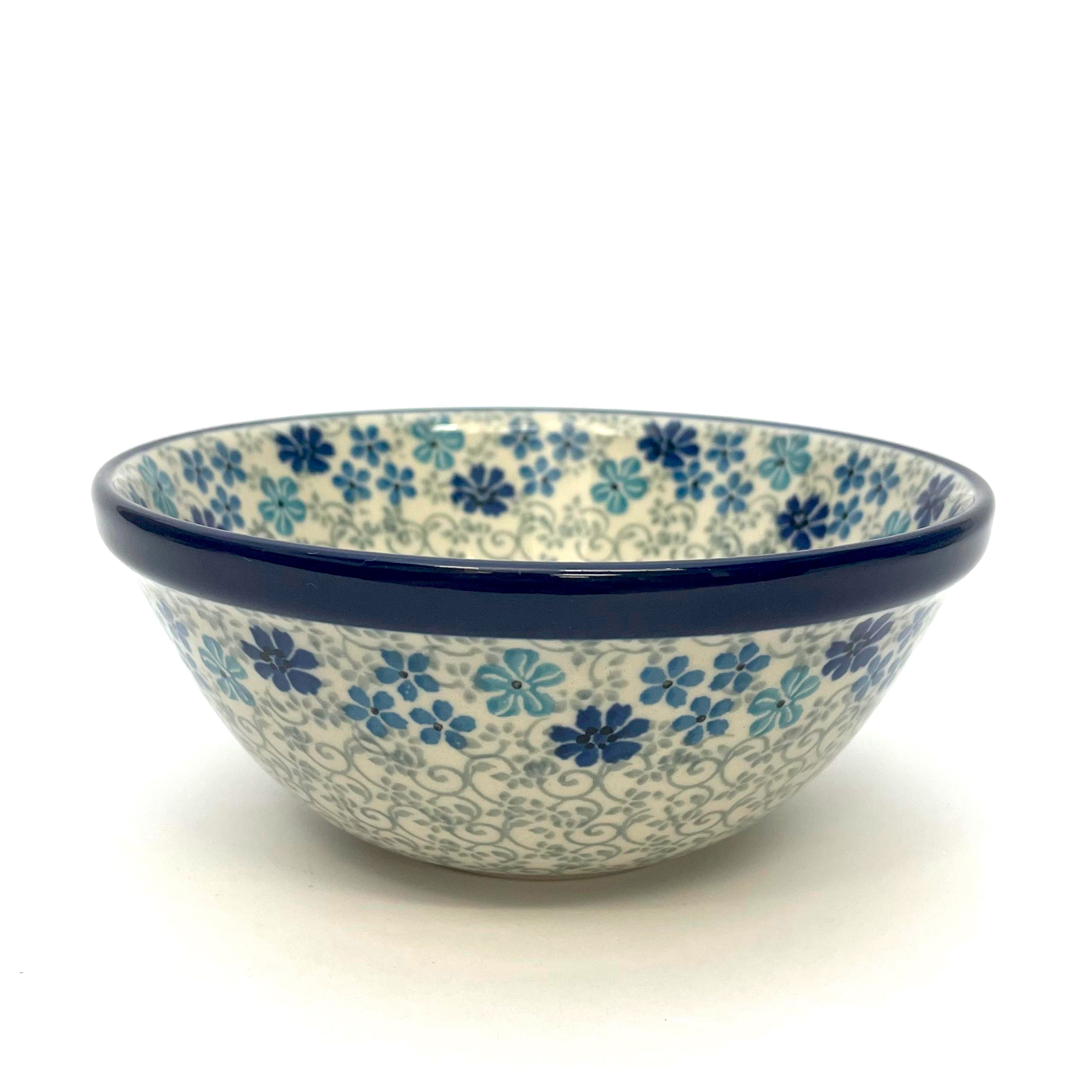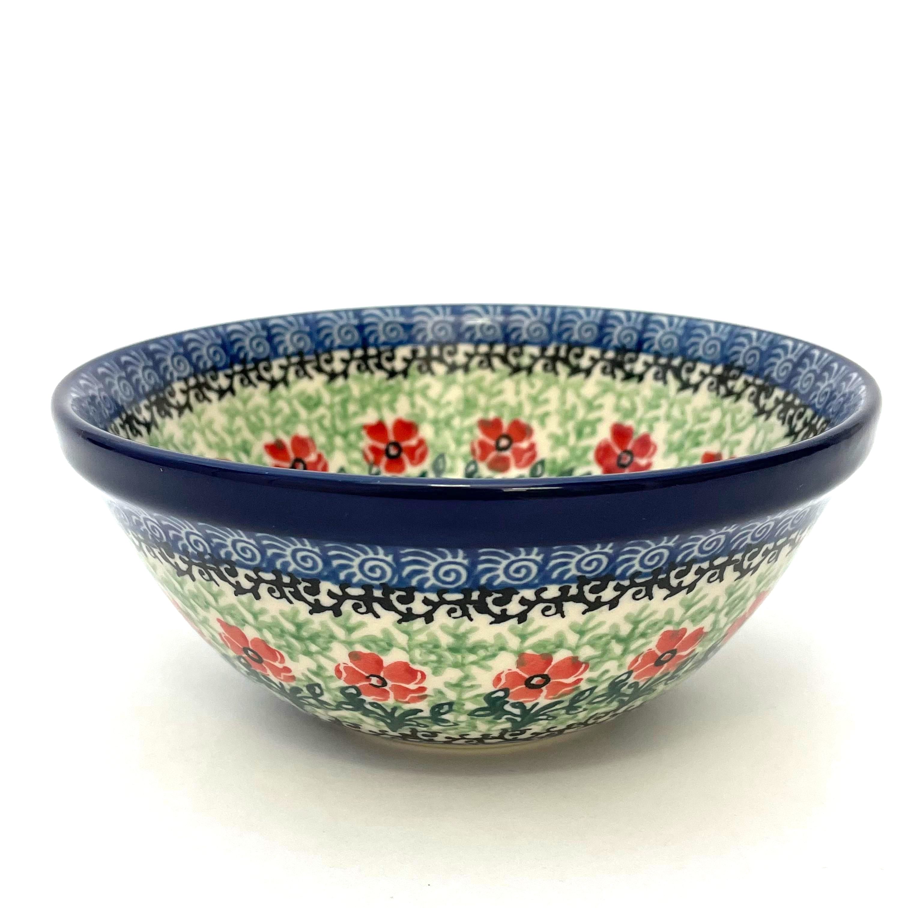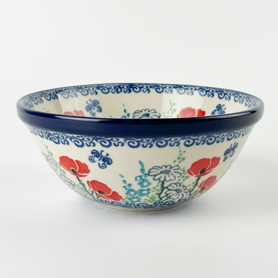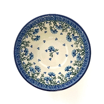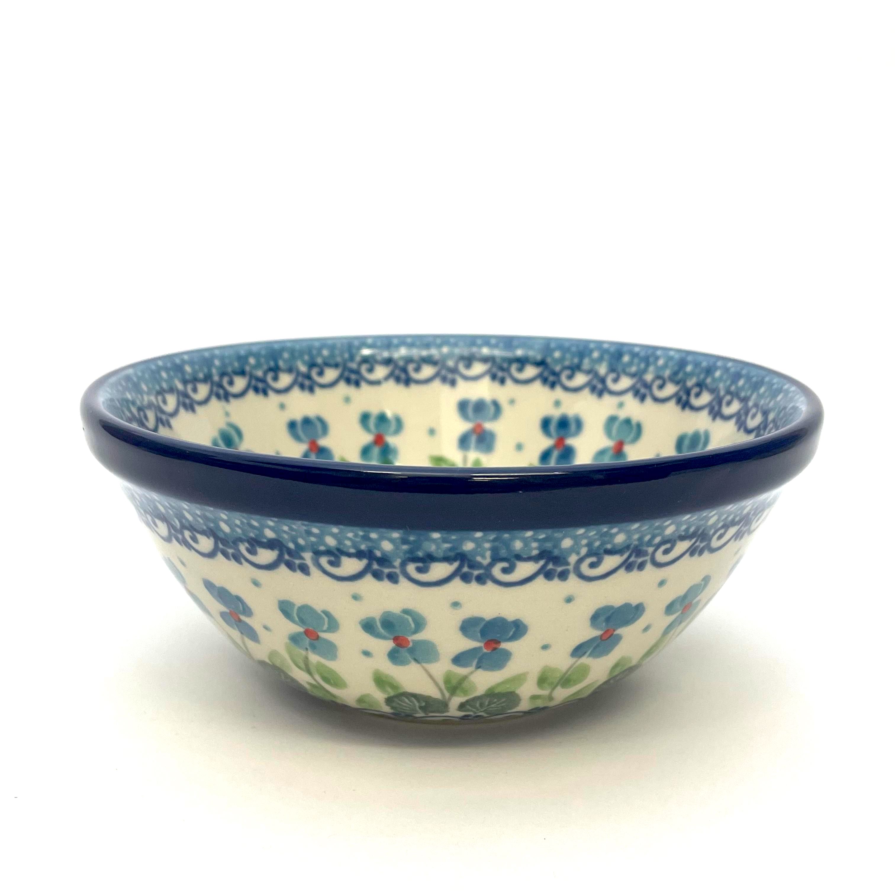 This bowl is 2.25"H x 5.5"W. Petite serving size for cereal, fruit etc. It is 1st Quality from Ceramika Artystyczna, and is oven, microwave and dishwasher safe.