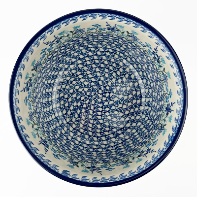 This generous mixing bowl is 10.5" w x 5.5" h. An all purpose mixing and serving bowl. Hand Painted by Ceramika Artystyczna. Oven, microwave and dishwasher safe.