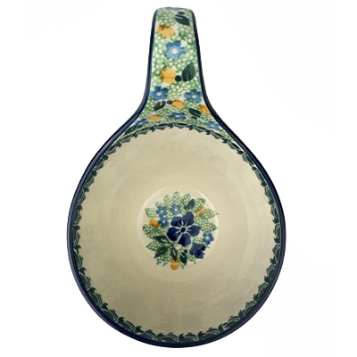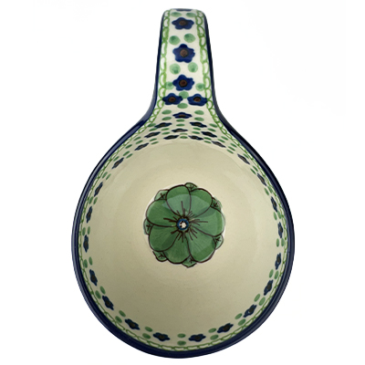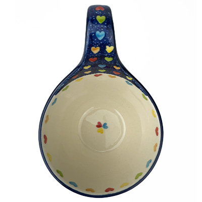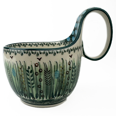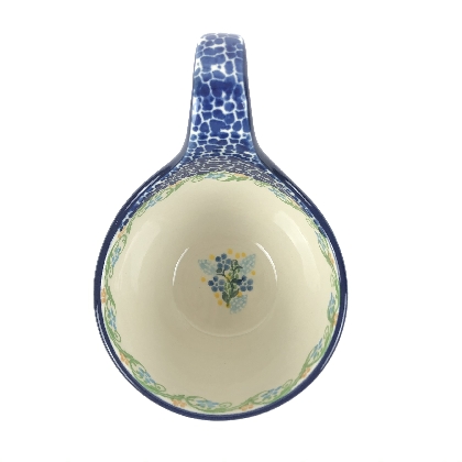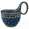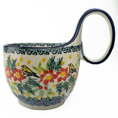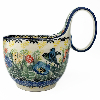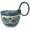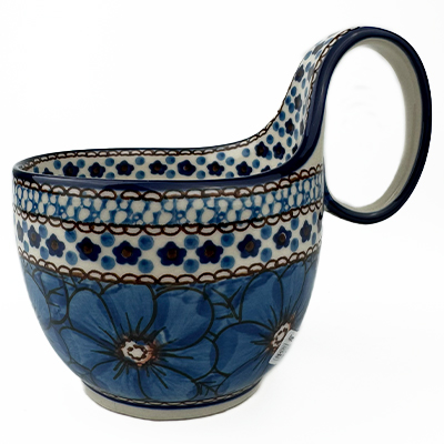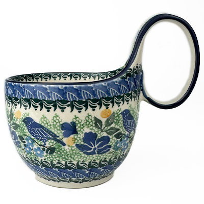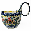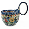 Unikat (unique) soup mug with handle. This soup mug is 16 oz. and is approx. 5"H. It's handle makes it the perfect bowl for soup, chili, cereal, ice cream or use it for serving your favorite dips or sauces. These intricate designs are all signed by the artist who created them. True works of art to add to your Polish pottery collection. Hand painted by a master artist at Ceramika Artystyczna. Oven, microwave and dishwasher safe.