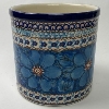 Unikat (unique) Utensil crock is 6" high and 5.5" across. A beautiful and practical way to keep your favorite utensils close at hand. These intricate designs are all signed by the artist who created them. True works of art to add to your Polish pottery collection. Hand painted by a master artist at Ceramika Artystyczna. All pottery is oven, microwave and dishwasher safe.