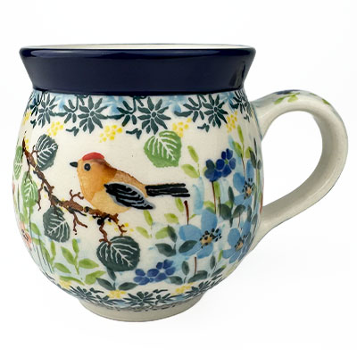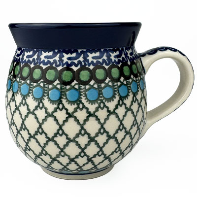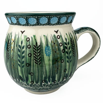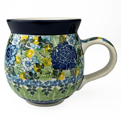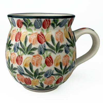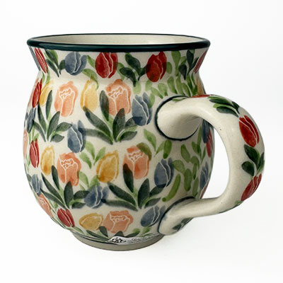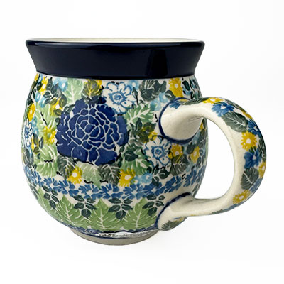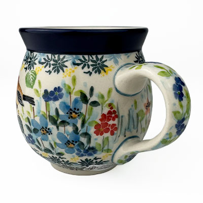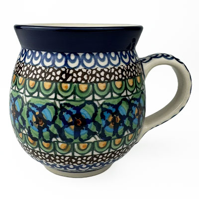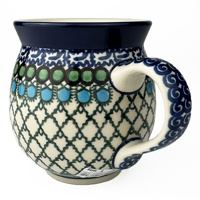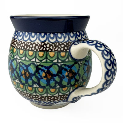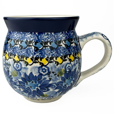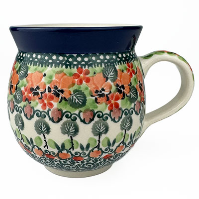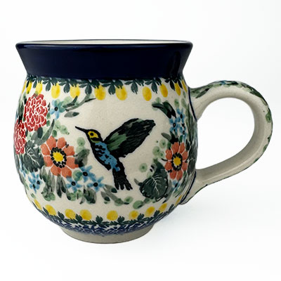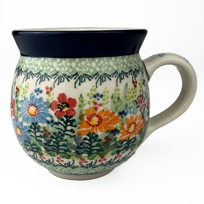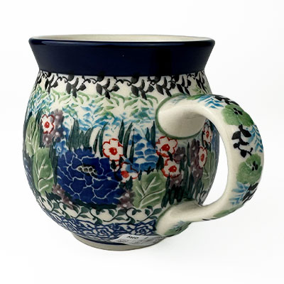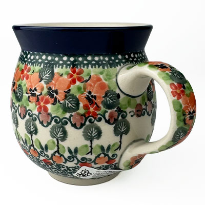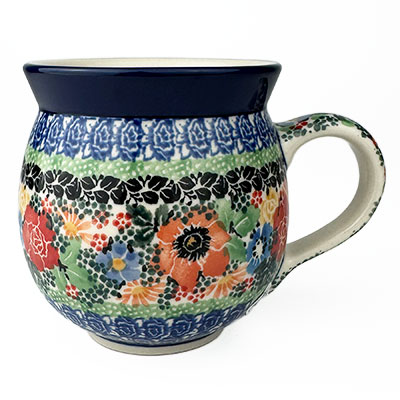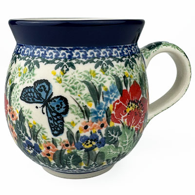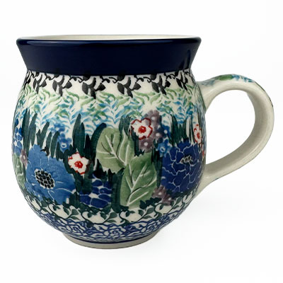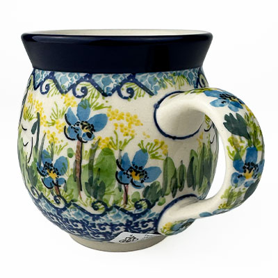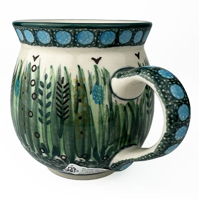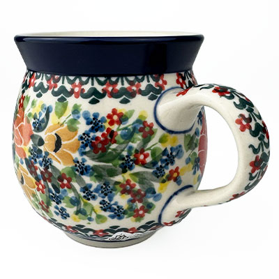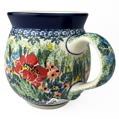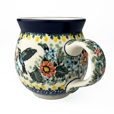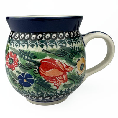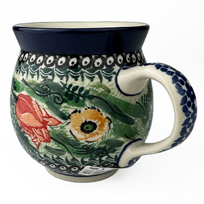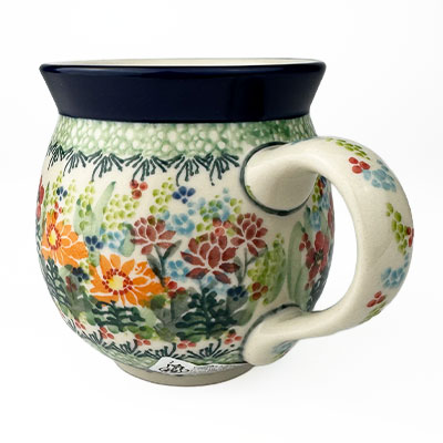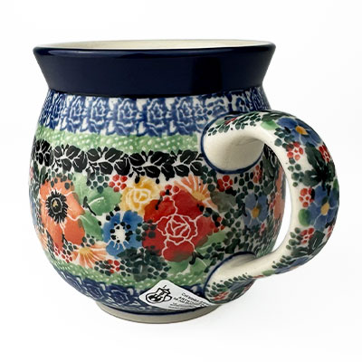 This Ladies Bubble Mug is 10 oz. and is approx. 3.75"H. These intricate designs are all signed by the artist who created them. True works of art to add to your Polish pottery collection. Hand painted by a master artist at Ceramika Artystyczna. Oven, microwave and dishwasher safe.