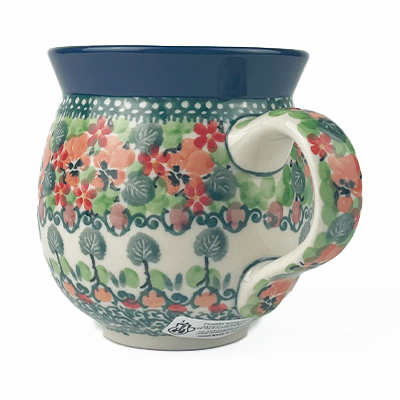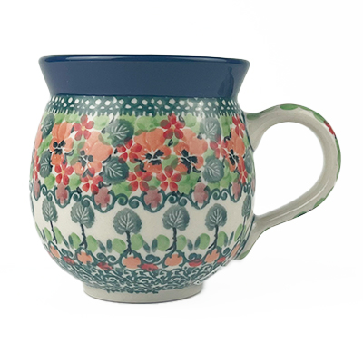 Ladies Bubble Mug This mug is 10 oz. and is approx. 3.75"H. These intricate designs are all signed by the artist who created them. True works of art to add to your Polish pottery collection. Hand painted by a master artist at Ceramika Artystyczna. Oven, microwave and dishwasher safe.