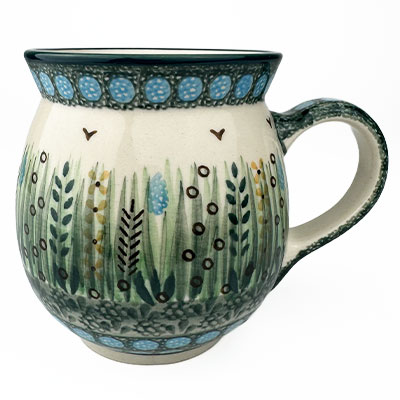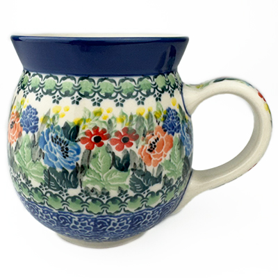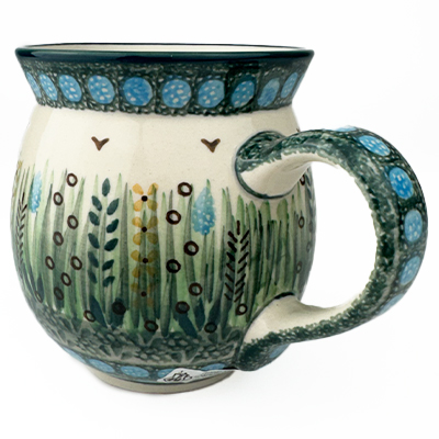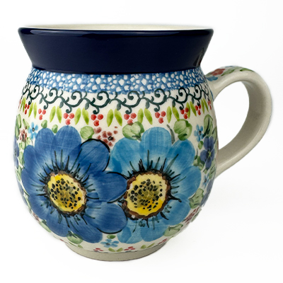 This 14 oz mug beautifully holds your morning cup of Joe. Hand painted by a master artist at Ceramika Artystyczna. Oven, microwave and dishwasher safe.