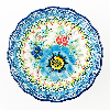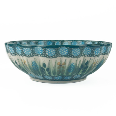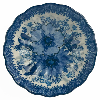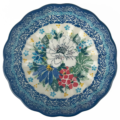 The Unikat Small Scalloped Dish measures 4.5in across by 1.5in tall. Perfect for your keys, jewelry, dips, and toppings. Hand painted by a master artist at Ceramika Artystyczna. Oven, microwave and dishwasher safe.