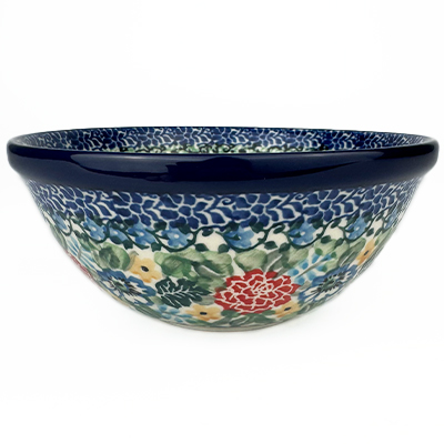 This bowl is 2.25"H x 5.5"W. Petite serving size for cereal, fruit etc. Hand painted by the master artists at Ceramika Artystyczna. Oven, microwave and dishwasher safe.