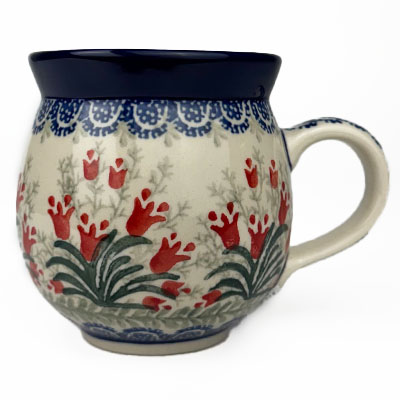 Ladies Bubble Mug This mug is 10 oz. and is approx. 3.75"H. Hand painted by the Ceramika Artystyczna factory, and is microwave and dishwasher safe.