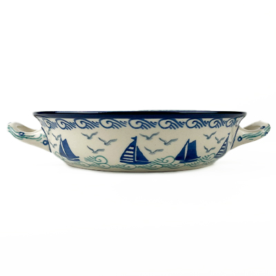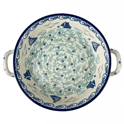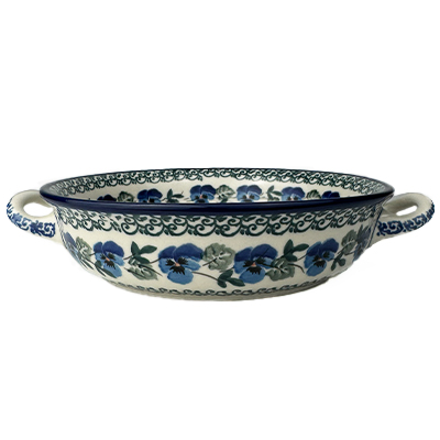 This 6.5" round baker with handles is perfect for baked brie, hot dips, a personal cobbler or dessert. Hand painted by Ceramika Artystyczna. Oven, microwave and dishwasher safe.