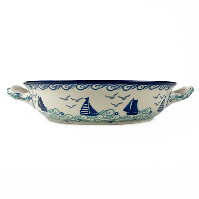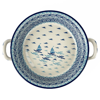 This 8" round baker is great for small casseroles and side dishes. The loop handles make it easy going from oven to table. Hand painted by Ceramika Artystyczna. Oven, microwave and dishwasher safe.