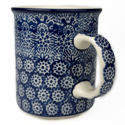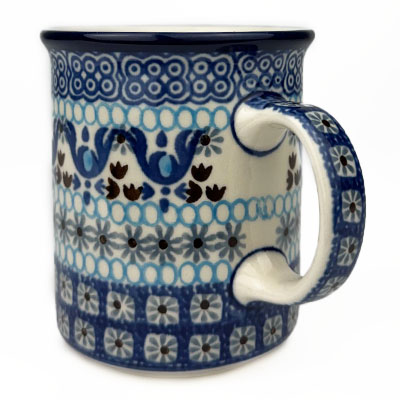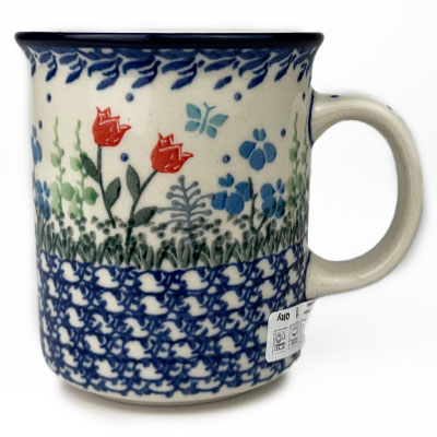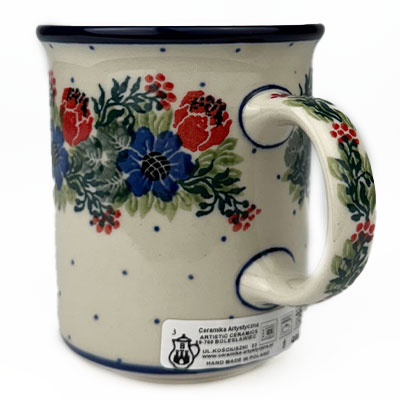 Straight Mug This mug is 10 oz. and is approx. 3.75"H. Hand painted from the Ceramika Artystyczna factory, and is microwave and dishwasher safe.