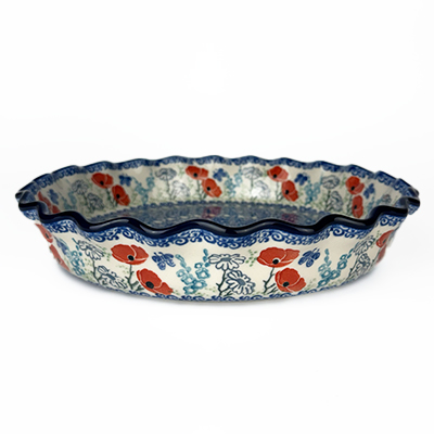 9.75" ruffled pie baker is perfect for baking and serving your next pie or quiche. Bakes evenly every time and cleans up in the dishwasher. Hand painted by Ceramika Artystyczna and is oven, microwave and dishwasher safe.